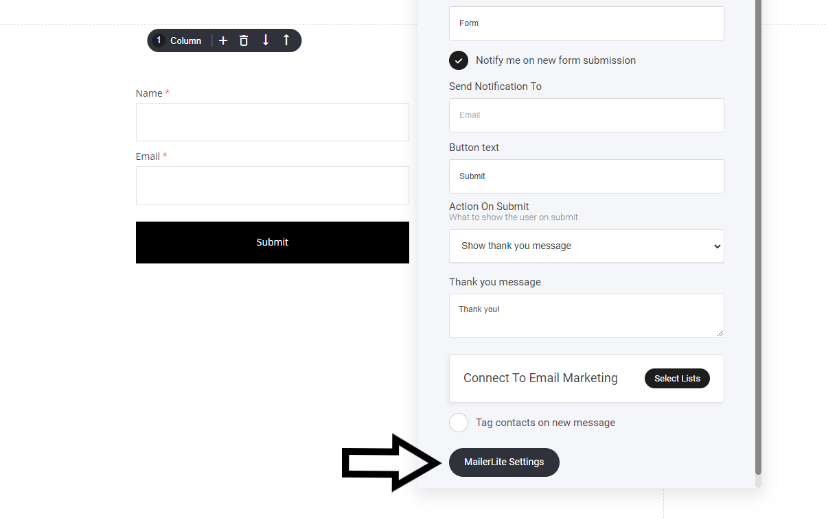 Once your connection is successful you will see the additional option at the bottom of your forms, checkout etc displaying the email provider you have connected. In this instance you can see that we have connected Mailerlite. Now whenever someone fill out that form they will be added to a selected Mailerlite email list.