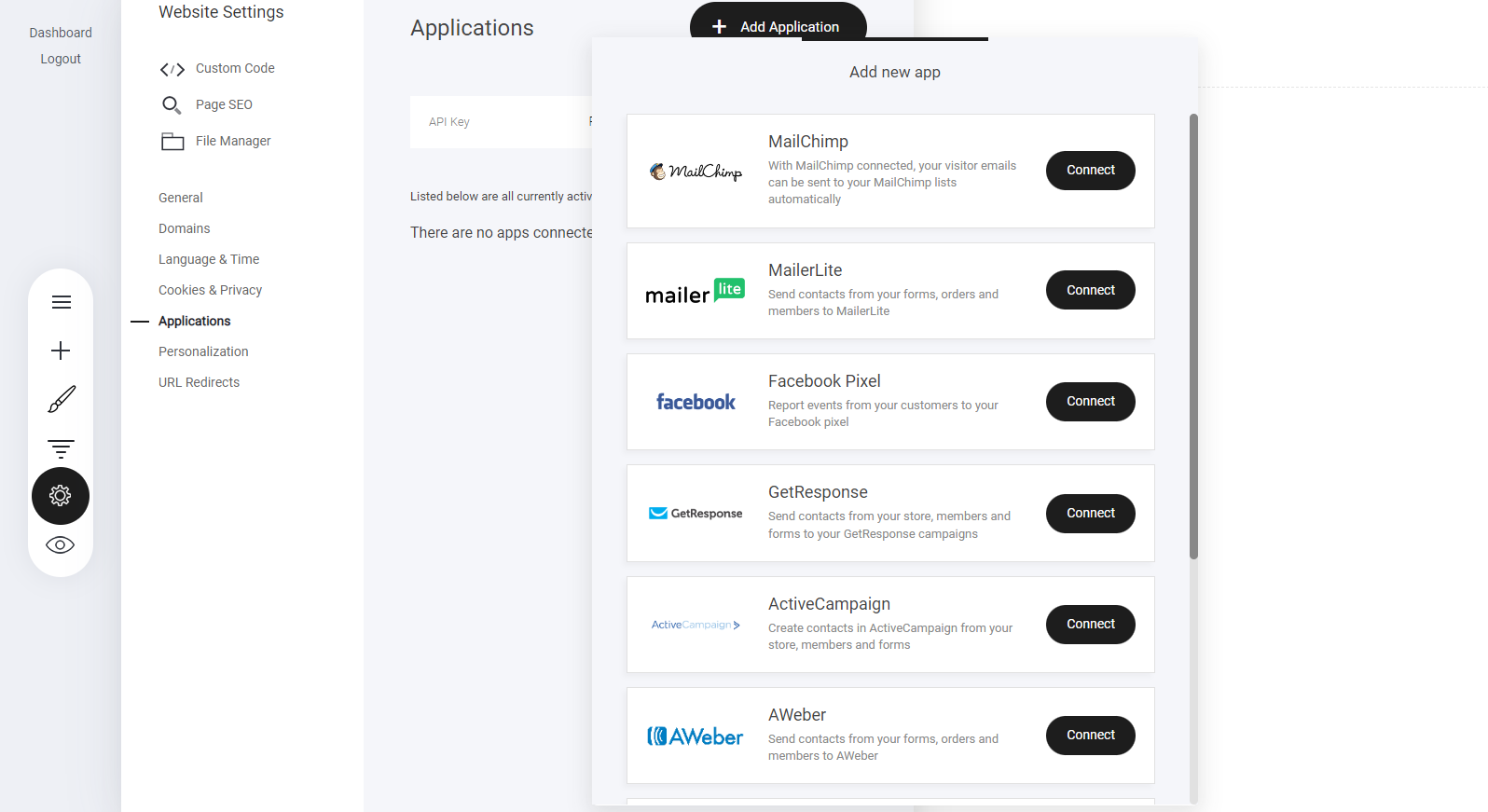 Select 'Applications' – Navigate to the integrations menu.