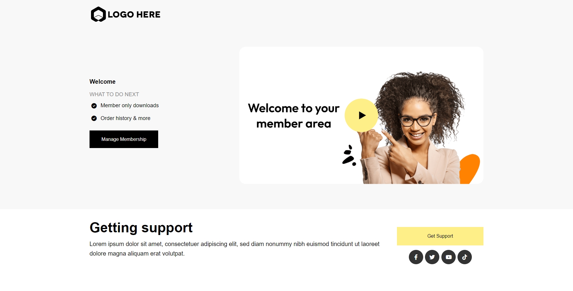 前述のとおり。ユーザーが正常に チェックアウト プロセスを完了した後、サンキューページにリダイレクトされます。このページは購入を確認し、次のステップに関する詳細を提供し、追加のリソースやボーナスを提示すべきです。また、他のコースや関連商品をアップセルする機会でもあります。さらに、サンキューページには会員が会員プログラムを始めるのに役立つ会員ナビゲーションを含めるべきです。