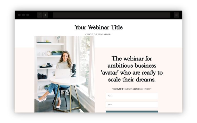 ランディングページ: ファネルの最初のステップで、ウェビナーの説明、その利点、および参加者が学べることを示すランディングページを作成します。ランディングページには明確な行動喚起(CTA)があり、訪問者をウェビナーの登録ページへ誘導する必要があります。