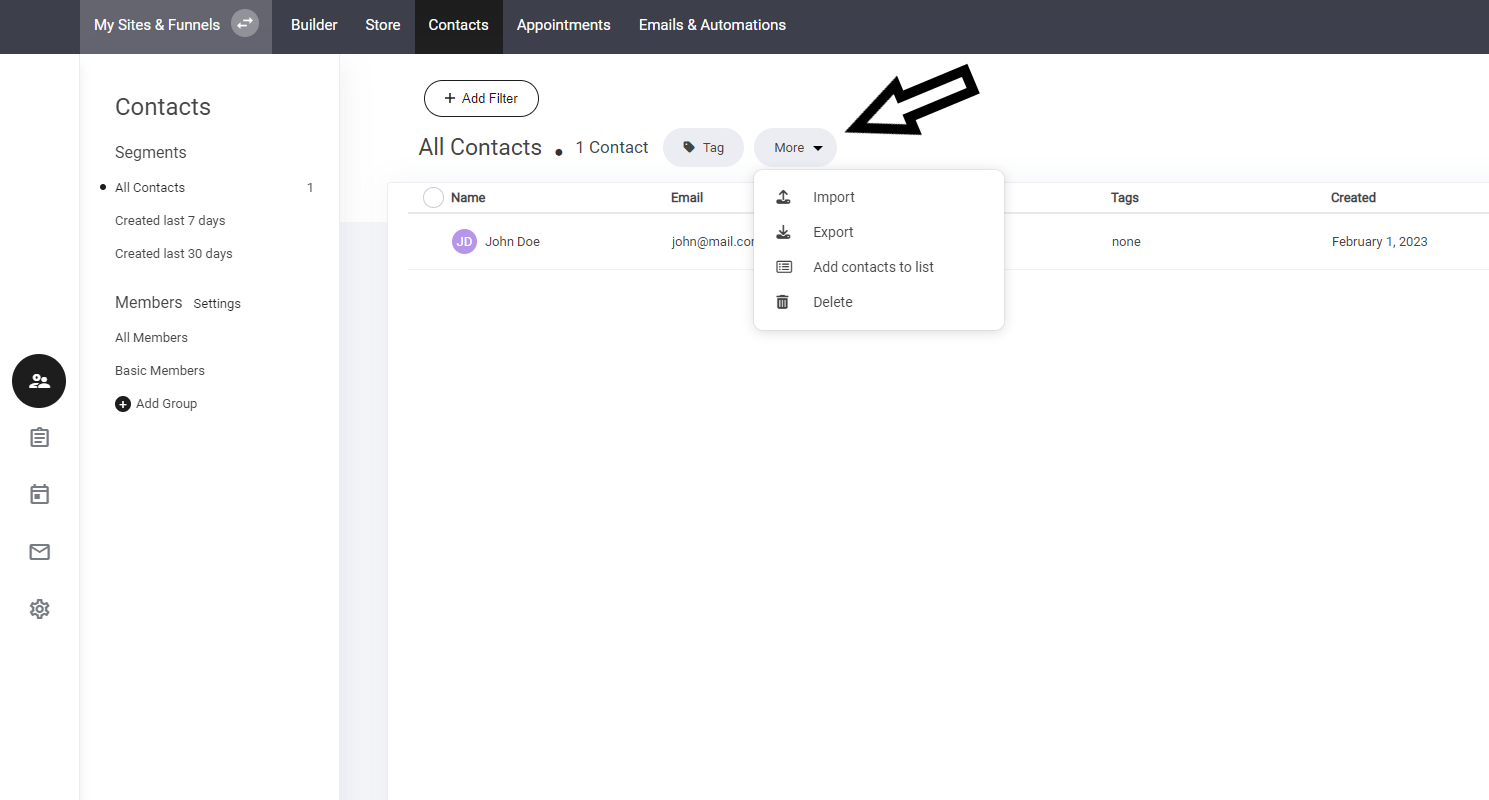 インポートセクション内で新しいウィンドウが開きます。連絡先をインポートするには「今すぐインポート」を選択し、クライアント情報を含むCSVファイルを追加するだけです。これで、すべての連絡先が自動的に連絡先エリアに追加されます。