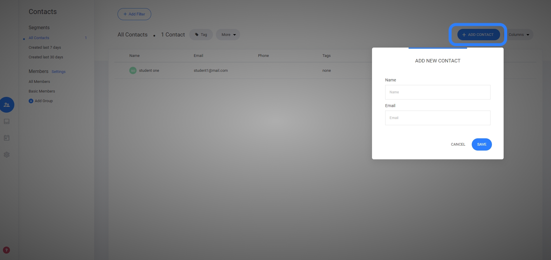 「連絡先を追加」を選択 – ダッシュボードの 右上 側にあります。