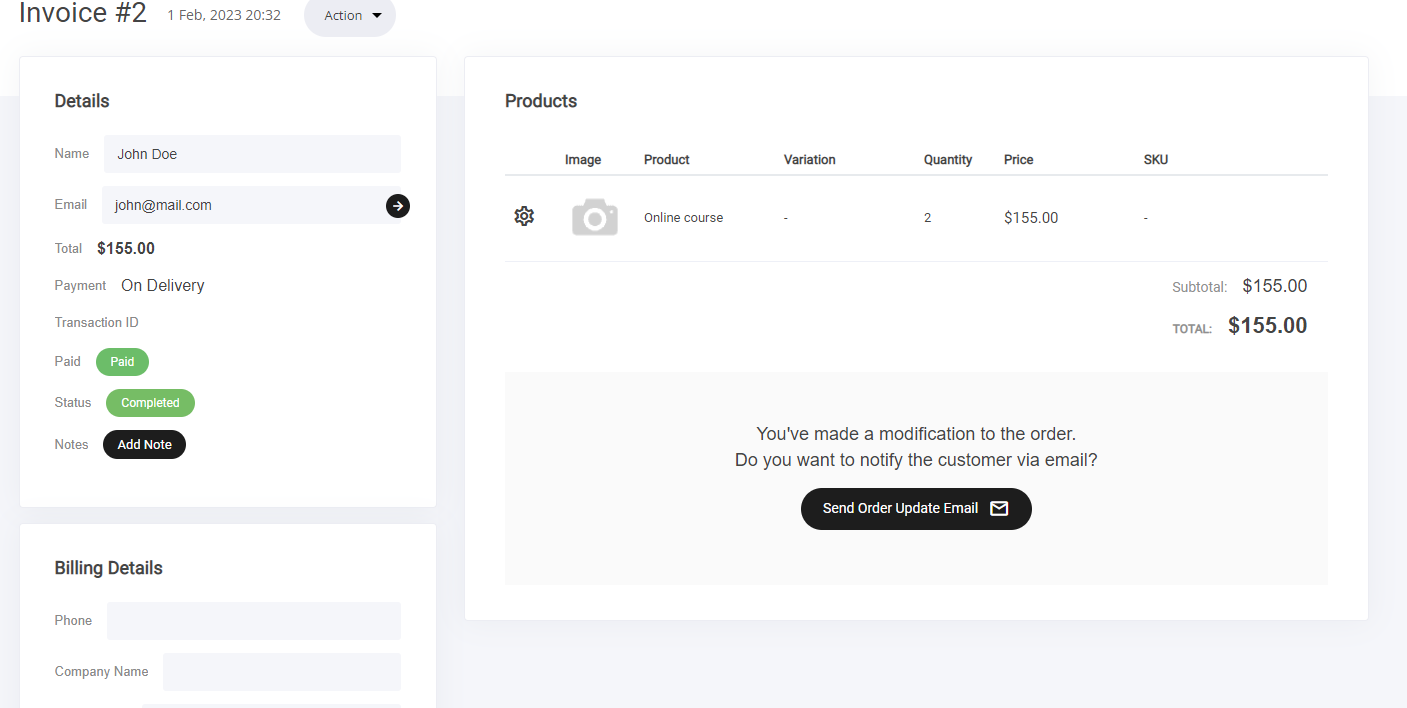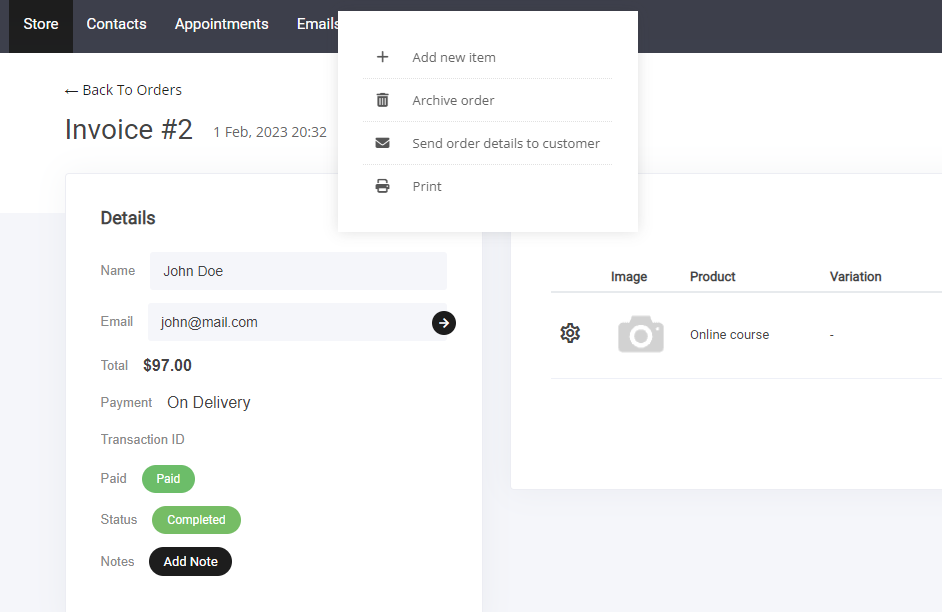 支払いステータスの変更 – 支払い確認を更新したり、必要に応じてステータスを調整します。