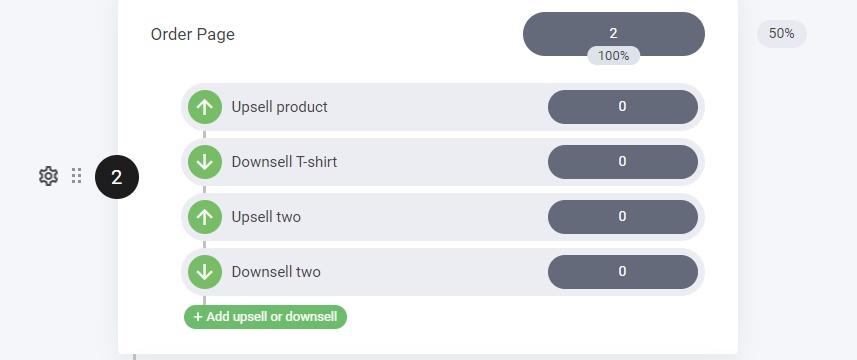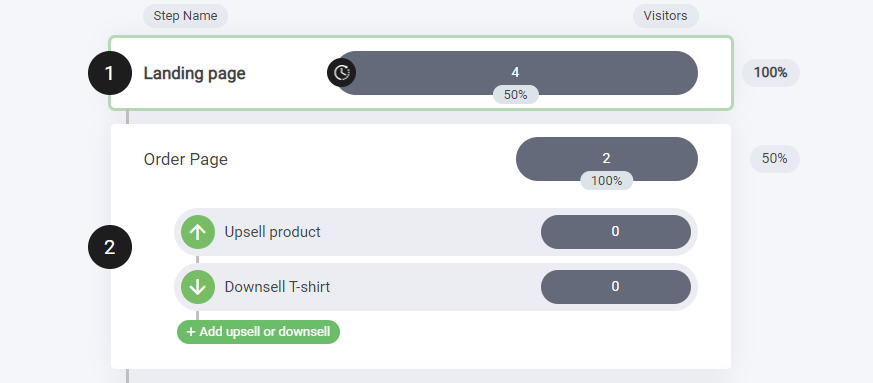 ダウンセルを保存すると、ファネル内のアップセルステップの下に表示されます。
