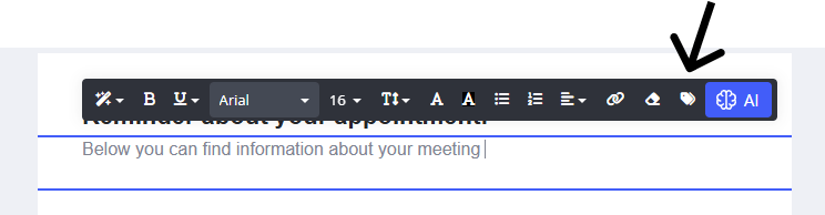 システムのメールテンプレートにさらにフィールドを追加するには、テキストを入力する際にテキストエディターを選択してから次をクリックしてください: タグ アイコン。タグアイコンをクリックすると、以下に示すようにシステムテンプレートに追加できる特定のフィールドが表示されます。