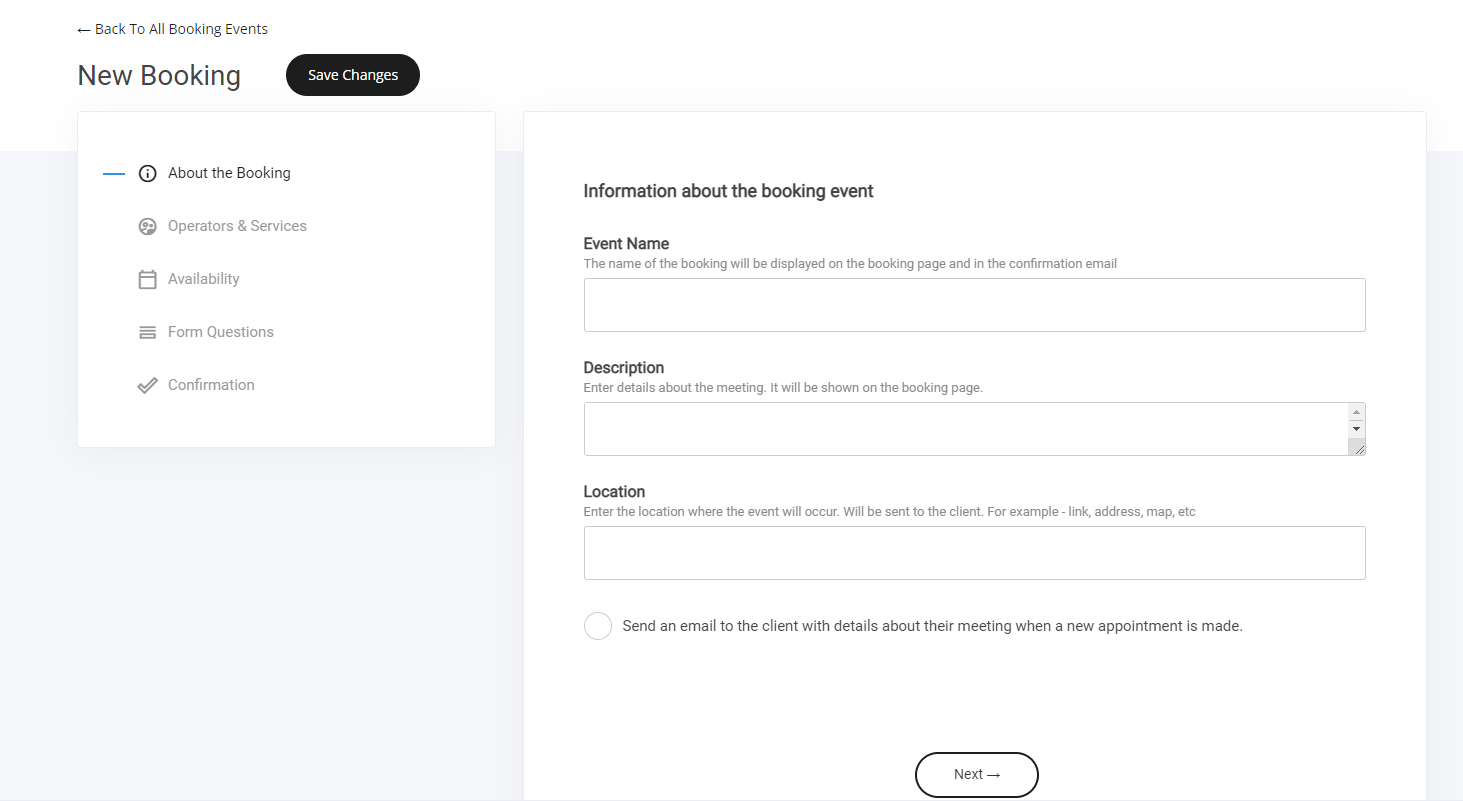 「新しい予約を作成」を選択する – イベントの設定を開始します。