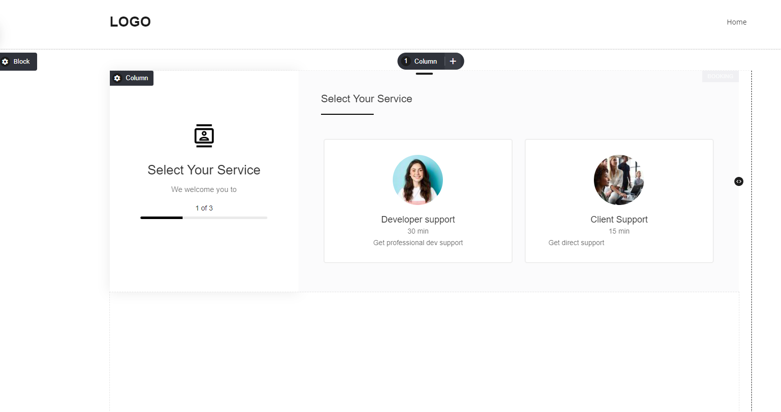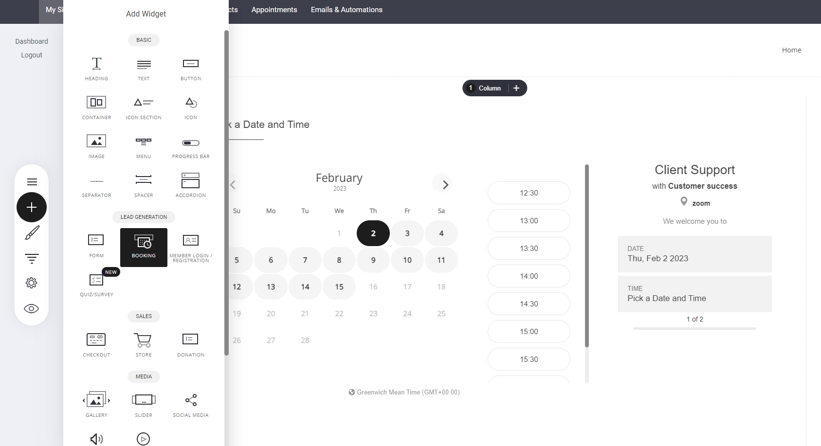 人々に予約してもらう方法は複数ありますが、最も良い方法は希望するページやファネルステップに予約ウィジェットを追加することです。下に示します。