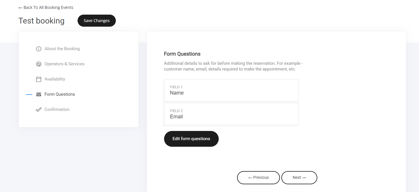 予約前に尋ねる追加の詳細。例えば顧客名、メール、予約に必要な情報などです。カスタムフィールドを追加したり、自分で項目を作成することもできます。