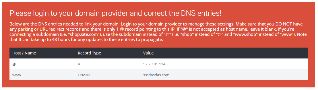 この期間中、レコードブロックは 赤になり、ドメインがまだ処理中であることを示します。