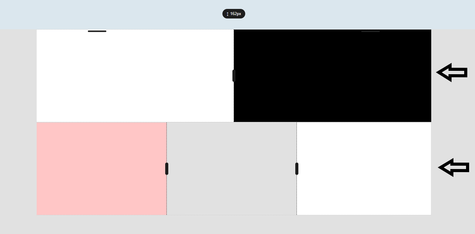 任意のコンテナ/ブロックと同様に、区分を作成して複数の水平カラムや垂直カラムを作れます。下の画像はコンテナ/ブロックが3つの水平カラムに分割されていることを示しています。