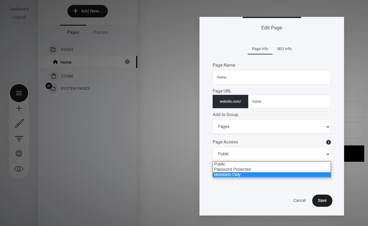 Select "Members Only" – Choose this option from the Page Access dropdown.