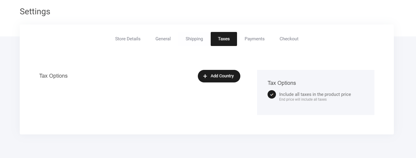 Similar to setting up your shipping options, taxes are configured pretty much the same way.