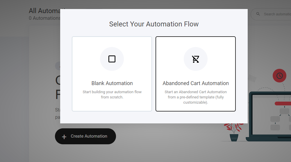 For this example we will select Blank automation. But you can read more about the Abandoned cart below.