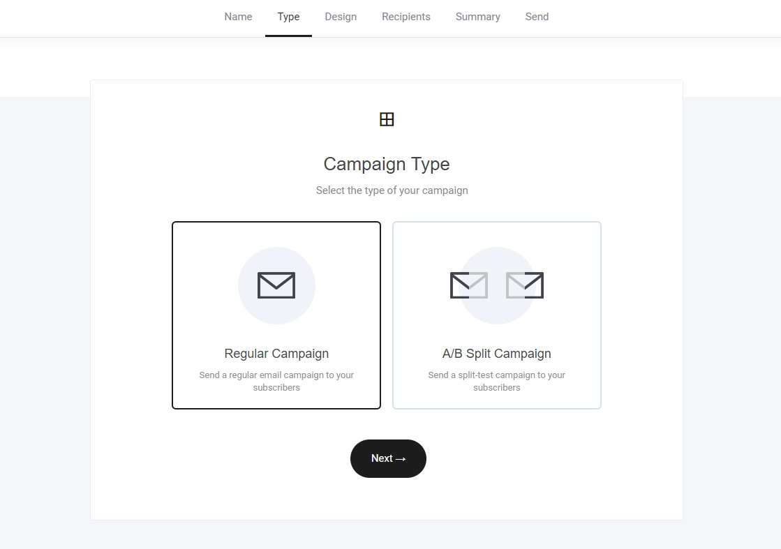 Whether you need to send an email to an entire list of subscribers or a segmented audience, simply select and go next.