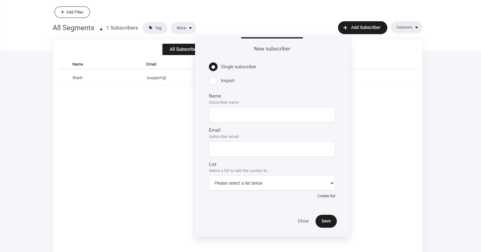 If you have a list on another platform or have a data base with customer data, you can quickly add all those users directly to your email subscribers lists.