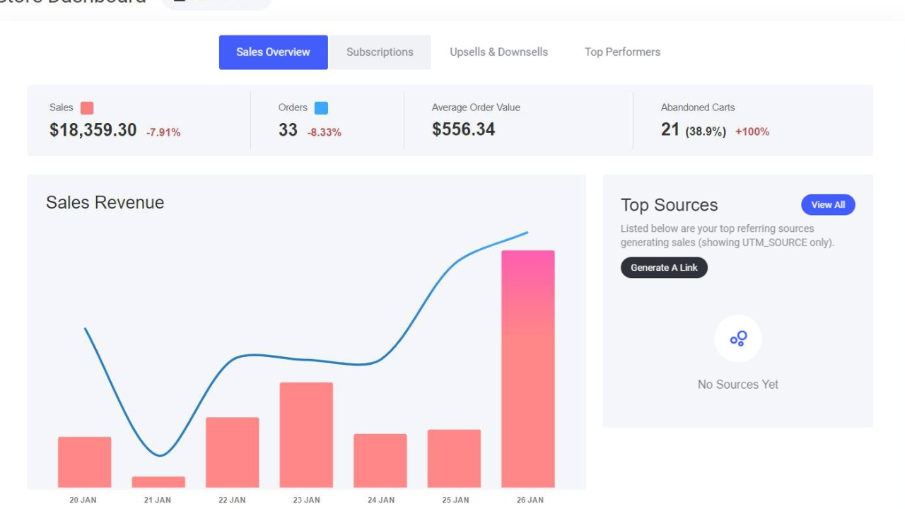 By default the button will direct the visitor back to the checkout page with the item/s that they left in their cart. Alternatively if you are using a sales funnel, simply direct them to the checkout step in your funnel. This will register the purchase conversion in both your store and funnel revenue analytics tab.